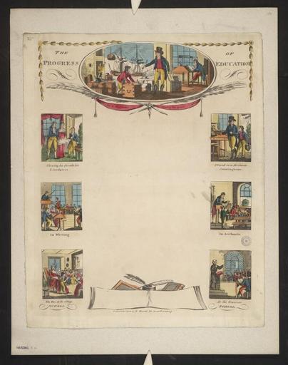 Keywords: Bodleian Libraries, Progress of education.jpg Writing blank of 1810 entitled The progress of education; As a merchant shiping his goods; Shewing his friends his schoolpiece; Placed in a merchants counting house; In writing; In arithmetic; Boy at the village school; At the grammar school; Harding B 44 34 single sheet; 478 x 378 mm; paper exhibition history object history object type Licensed-PD-Art PD-old-100 cc-by-4 0 place of creation London England Harrild Robert place of discovery http //digital bodleian ox ac uk/inquire/p//0f33a2da-27ff-46d2-ba7a-998a7fb521c9 Digital Bodleian Template John Johnson Progress of education Uploaded with GWToolset Bodleian Libraries Progress of education http //iiif bodleian ox ac uk/iiif/image/0f33a2da-27ff-46d2-ba7a-998a7fb521c9/full/ 1000 1000/0/default jpg Files uploaded by the Bodleian Libraries' Wikimedian In Residence Desks |