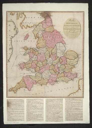 | Keywords: Bodleian Libraries, Wallis's tour through England and Wales, a new geographical pastime.jpg s are transcribed above; Directions for making the tour of England; Rochester - a city of great antiquity situate on the river Medway over which is a bridge It is the see of a bishop; Canterbury - a city famous for being the metropolitan see of all England as well as for its great antiquity and beautiful cathedral; Margate - a place of great resort from London for sea-bathing; Dover - the principal of the Cinque Ports Here is a famous castle and here the French and Flemish packets were stationed; Tunbridge - famous for its elegant turnery ware and for its chalybeate waters; Guildford - properly the county town of Surry on the river Wye which is navigable from thence to the Thames; Lewes - a well-built populous town near which King Henry III was defeated and taken prisoner 1263; Brightelmstone - the most fashionable resort for sea-bathing Here Charles II embarked for France 1651 after the battle of Worcester; Chichester - a city and bishoprick Needles are here manufactured; and its haven produces fine lobsters; Portsmouth - the traveller may stay one turn here to view one of the most secure and capacious harbours for shipping in England; also its noble docks yards and magazine of naval stores; Newport - in the Isle of Wight Here Charles I was imprisoned in Carisbrooke Castle; Pool - a considerable sea-port which employs a number of ships in the Newfoundland fishery; Southampton - a town of much resort for sea-bathing To enjoy this pleasure the traveller must stay one turn; Winchester - a very ancient city and bishop's see Charles II began a magnificent palace here but did not live to finish it; Salisbury - a city and bishop's see Stay one turn here to see its beautiful cathedral and take notice of a stream of water flowing through every street; Shaftsbury - a borough town which was formerly a place of consequence; Dorchester - the county town famous for its strong beer and for its superb county gaol lately built; Weymouth - an elegant watering-place resorted to for the purpose of sea-bathing; Exeter - the capital of Devonshire - and is a bishop's see it contains fifteen parish churches besides its fine cathedral; Torbay - here the traveller must stay one turn to view the English Grand Fleet lying at anchor; Eddistone - a rock in the English Channel on which is a light-house for the direction of ships going in or out of the Channel; Plymouth - sea-port celebrated for its royal dock-yard which is the finest in the kingdom The traveller must stay one turn to see the beautiful seat of Lord Mount-Edgecombe; Falmouth - here the packets to Spain Portugal and America are stationed; Land's End - this being the extremity of the West of England the traveller must stay here one turn to refresh himself; Launceston - the county town of Cornwall; Barnstaple - a sea-port of Devon on the river Taw Here many vessels are employed in the Welch coal-trade; Wallis's tour through England and Wales a new geographical pastime single sheet; 525 x 655 mm; paper exhibition history Allegro identifier 20040607/16 40 51 jl object history object type Licensed-PD-Art PD-old-100 cc-by-4 0 place of creation London England Wallis John place of discovery http //digital bodleian ox ac uk/inquire/p//476d9e20-3981-42e9-ab2c-0072bcca7d76 Digital Bodleian Template John Johnson Wallis's tour through England and Wales a new geographical pastime Uploaded with GWToolset Bodleian Libraries Wallis's tour through England and Wales a new geographical pastime http //iiif bodleian ox ac uk/iiif/image/476d9e20-3981-42e9-ab2c-0072bcca7d76/full/ 1000 1000/0/default jpg Files uploaded by the Bodleian Libraries' Wikimedian In Residence Game boards |