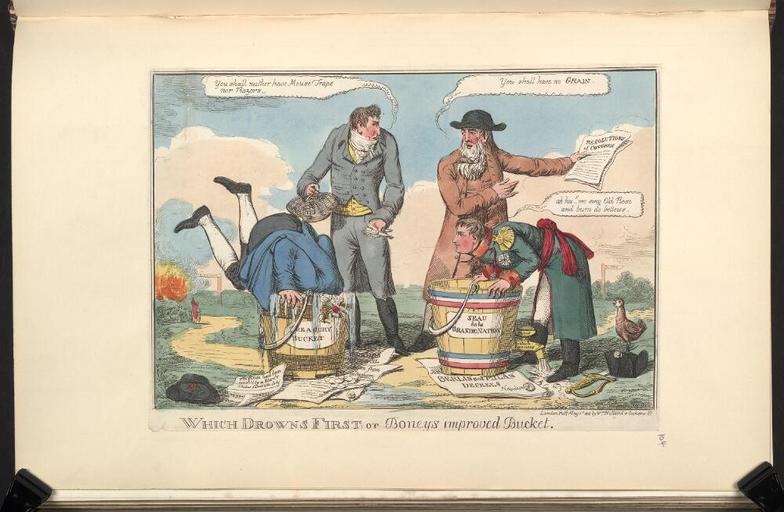 | Keywords: Bodleian Libraries, Which drowns first or- Boneys improved bucket.jpg Satire on the Napoleonic wars and restrictions on trade British political cartoon 234 x 332 sheet mm exhibition history Source filename politi004-azc-0001-0 object history object type Licensed-PD-Art PD-old-100 cc-by-4 0 place of creation London England William Holland place of discovery http //digital bodleian ox ac uk/inquire/p//a43bdc54-167d-48c1-a8b8-04d731a01834 Digital Bodleian Template Bodleian Libraries Which drowns first or Boneys improved bucket Uploaded with GWToolset Bodleian Libraries Which drowns first or Boneys improved bucket http //iiif bodleian ox ac uk/iiif/image/a43bdc54-167d-48c1-a8b8-04d731a01834/full/ 1000 1000/0/default jpg Files uploaded by the Bodleian Libraries' Wikimedian In Residence Napoleonic Wars Mordaunt Charles Sir 1771 -1842 Rose George 1744-1818 Caricatures of Napoleon I of France National stereotypes -- American Curzon Collection |
