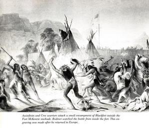 View Original:bodmer_assiniboin_cree_warriors_attack_blackfeet.jpg (1286x1102)
