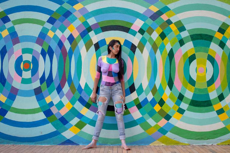 Keywords: body art body paint body art women artist hector ortiz light color brush wall circle