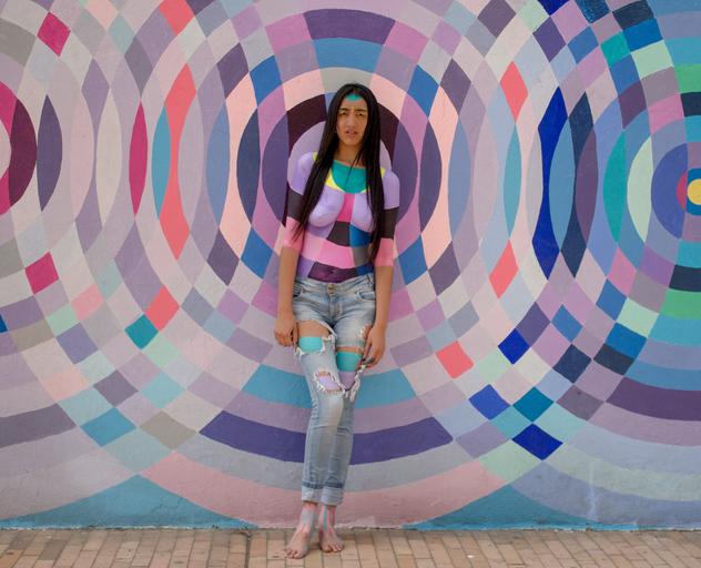 Keywords: body art body paint body art women artist hector ortiz light color brush wall circle
