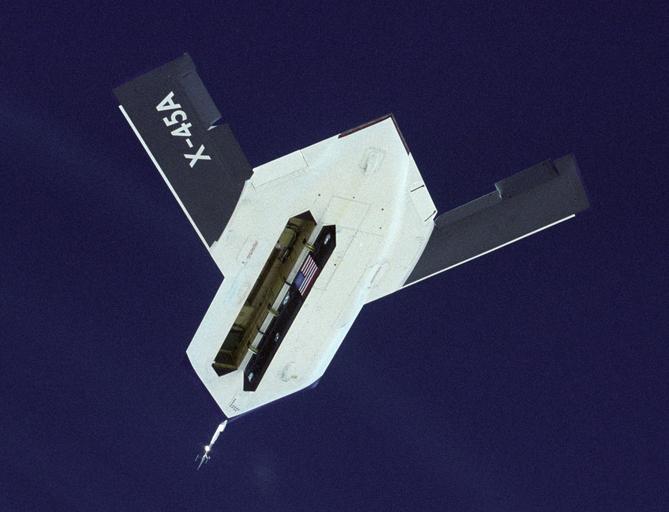 Keywords: boeing x-45a aircraft drone unmanned underside weapons bay doors open military prototype