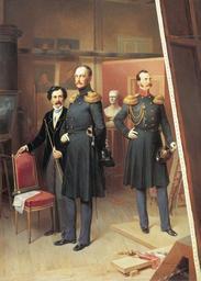 | Keywords: Bogdan Villevalde, Nicholas I of Russia and Alexander Nikolayevich in 1854.jpg  ru Виллевальде Богдан Павлович  иколай I с цеса евичем Александ ом  иколаевичем в масте ской художника в 1854 году 1884 de Bogdan Willewalde der Zar Nikolaus I und der Thronnachfolger Alexander im Atelier des Künsters Bogdan Villevalde Creator Bogdan Pavlovich Willewalde 1884 PD-art PD-RusEmpire PD-old Bogdan Villevalde Nicholas I of Russia in portraits Family portraits of Russian rulers 1884 paintings from Russia Alexander II of Russia as Grand Duke 1854 Group portraits with 3 persons Location of museum or gallery missing Alexander II of Russia in documentary paintings Nicholas I of Russia in documentary paintings Portraits with image of family member Self-portraits with easel Military of the Russian Empire by Bogdan Villevalde |