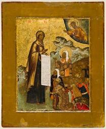 | Keywords: Bogomater s predstoyashimi (1613-1620).jpg БОГО АТЕРЬ С ПРЕДСТОЯЩИ И В нимбе изоб ажен мит ополит Пет осковский ниже пат иа х Фила ет и ца ь ихаил Федо ович 1613 1620-е годы осква Де ево; темпе а 54 х 44 аходилась в Успенском собо е осковского К емля К инв Ж-156 http //www svyatayarus ru/data/icons/178_bogomater_s_predstoyashimi/index php 1613 1620-е годы Creator Unknown PD-Art Exhibition Sainte Russie Moscow 2011 - icons Files uploaded by Shakko from various sources Michael I of Russia Patriarch Filaret Icons in the Museums of Moscow Kremlin Icons of Peter of Kiev Icons formerly in the Assumption Cathedral in Moscow Bogomater s predstoyashimi |