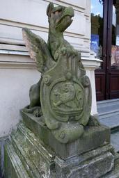 Keywords: Bohemian lion, Karlsbad (Karlovy Vary), 2016-10-04 (1).jpg Skulptur eines Greifens mit dem Wappenschild des böhmischen Löwen Vor dem Theatergebäude Karlsbad Karlovy Vary 2016 own 2016-10-04 Kürschner <span class signature-talk ></span> 07 44 12 October 2016 UTC Kürschner 2016 in Karlovy Vary Griffins Coats of arms of Bohemia Crowned lions rampant in heraldry Sculptures in Karlovy Vary