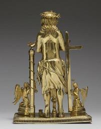 | Keywords: Bohemian - Reliquary with the Man of Sorrows - Walters 57700 - Back.jpg The image of the Man of Sorrows is a distillation of the events of Christ's Passion Christ contemplates with sorrow the instruments of his suffering the cross and hammer whips nails column of the Flagellation and the dice thrown by the soldiers for his garments The gabled container held by an angel once housed a thorn believed to be from Christ's Crown of Thorns while the hinged cross and column probably held pieces of wood believed to be from Christ's cross and from the column against which he was whipped According to an inscription on the base the reliquary was ordered by the bishop of Olomouc in Moravia to house the Holy Thorn It was surely a present for Holy Roman Emperor Charles IV Both men's coats of arms those of Moravia and Bohemia are on the base and the thorn was already in the emperor's famous collection of relics as a gift from the king of France As Charles reigned over both Bohemia and Moravia only from 1347 to 1349 the piece dates to this time The sophisticated workmanship is characteristic of objects created for the imperial court in Prague between 1347 1349 Medieval gilded silver silver champlevé enamel glass paste imitation ruby H 11 5/8 x W at wings 8 3/8 x D 5 in 29 53 x 21 27 x 12 7 cm accession number 57 700 29555 Jacques Seligmann Paris date and mode of acquisition unknown Henry Walters Baltimore June 9 1903 by purchase Walters Art Museum Henry Walters Acquired by Henry Walters 1903 Transcription Majuscule inscription on the pedestal HANC MONSTRANCIAM CUM SPINA CHORONE DOMINI DNS IOHANNES OLOMUCZENSIS EPISCOPUS PREPARARI FECIT Translation John the bishop of Olmütz commissioned this monstrance with the thorn of the crown of Christ The Way to Heaven Relic Veneration in the Middle Ages Museum Catharijneconvent Utrecht; Nieuwe Kerk Amsterdam Amsterdam 2000-2001 The International Style The Arts in Europe Around 1400 The Walters Art Gallery Baltimore 1962 Kaiser Karl IV 1316-1378 Bayerisches Nationalmuseum Munich 1978 Die Parler und der Schöne Stil 1350-1400 Schnütgen-Museum Cologne 1978-1979 Reliquaries and Ritual Medieval Objects of Devotion The Walters Art Gallery Baltimore 1984-1985 Highlights from the Collection The Walters Art Gallery Baltimore 1998-2001 Prague The Crown of Bohemia The Metropolitan Museum of Art New York; Prague Castle Prague 1 2005-2006 Silesia - A Pearl in the Bohemian Crown Three Periods of Flourishing Artistic Relations Waldstein Riding School Prague Prague 2006-2007 Treasures of Heaven The Cleveland Museum of Art Cleveland; The Walters Art Museum Baltimore; The British Museum London 2010-2011 place of origin Prague Czech Republic Walters Art Museum license Bohemian Reliquary with the Man of Sorrows in the Walters Art Museum Medieval reliquaries Bohemia Media contributed by the Walters Art Museum needs category review Media contributed by the Walters Art Museum needs artist review |