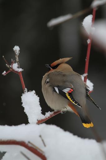| Keywords: bohemian waxwing bohemianwaxwing bombycilla garrulus bombycillagarrulus glacier national park glaciernationalpark nps montana birds spring snow ornithology outdoor A Bohemian Waxwing (Bombycilla garrulus) puffs its feathers on this cold and snowy day in April. Photo: David Restivo, NPS A Bohemian Waxwing (Bombycilla garrulus) puffs its feathers on this cold and snowy day in April. Photo: David Restivo, NPS | ||||