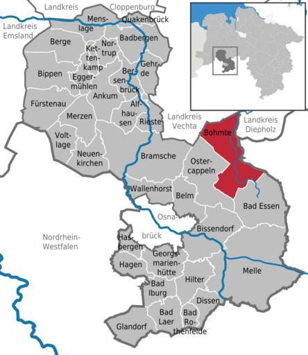 | Keywords: Bohmte in OS.svg  DeLocMaps Bohmte Landkreis Osnabrück District of Osnabrück Osnabrück district L'arrondissement d'Osnabrück Arrondissement d'Osnabrück Niedersachsen Lower Saxony Basse-Saxe TUBS/Translation own Adobe Illustrator based on File Lower Saxony location map svg NordNordWest http //www landkreis-osnabrueck de/pics/medien/1_1221811658/Zwei_Wege_Strategie pdf Landkreis Osnabrück Die 2-Wege-Strategie im Landkreis Osnabrück File Locator map OS in Lower Saxony svg TUBS 2009-06-20 TUBS TUBS GFDL cc-by-3 0 2 5 2 0 1 0 cc-by-sa-3 0 2 5 2 0 1 0 TUBS/Credits Locator maps of municipalities in Landkreis Osnabrück Bohmte |