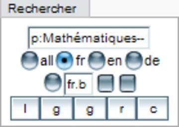 | Keywords: Boîte de recherche JS.png Illustration du script MediaWiki Gadget-AdvancedResearch js Ici la recherche porte sur la page Special Recentchangeslinked/Portail Mathématiques p raccourci de Portail -- raccourci de Special Recentchangeslinked/ Le wiki choisi est la Wikipédia francophone fr mais il est possible de choisir l'anglophone en la germanophone de toutes les Wikipédias all pour recherches avec Google ou un wiki spécifique ici fr b pour le Wikibooks francophone Les moteurs de recherche disponibles sont l'accès direct à l'article avec l lire la recherche avec le moteur de recherche de Wikipédia w par défaut mais remplacé ici par g recherche sur le Web avec Google la recherche avec Google sur le site Wikipédia g la recherche de texte exact sur le Web avec Google c pour les recherches de copyright r signifie remise à zéro Il est possible de configurer presque entièrement les raccourcis boutons langues à afficher etc Transferred from http //fr wikipedia org fr wikipedia; transferred to Commons by User Bloody-libu using http //tools wikimedia de/~magnus/commonshelper php CommonsHelper 2007-05-31 Original uploader was Seb35 at http //fr wikipedia org fr wikipedia Released into the public domain by the author fr wikipedia Seb35 Original upload log Illustration de mon script MediaWiki JSScripts/AdvancedResearch Licence </nowiki> French Wikipedia screenshots |