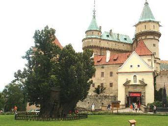 Keywords: Bojnicky zamok - vstup.jpg sk Bojnický zámok vstup do zámku a lipa kráľa Mateja own Lady Rowena 2005-07-24 Bojnice Castle Tilia of King Matthias Corvinus in Bojnice