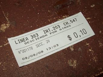 Keywords: Boleto-9-9-09.JPG es Es una foto de un boleto escolar de la línea 383 una sublínea del 500 ramal 7M del día 9/09/2009 own Gelpgim22 Sergio Panei Pitrau 2009-09-09 Trabajo propio September 2009 in Argentina Bus tickets of Argentina