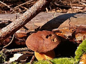 Keywords: boletus fungus forest mechh detail dry branch macro