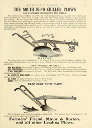 | Keywords: Bolgiano's 1902 catalogue (15727593114).jpg 935 B Strkkt N W Washington D C <br> 35 <br> THE SOUTH BEND CHILLED PLOWS <br> ARE STANDARD THROUGHOUT THE WORLD <br> The chilled metal of which our plows are made is superior to any material ever used by any <br> plow manufacturer This metal is made under our own letters patent and has no equal for wear <br> and scouring By our process we entirely changed the nature of the iron making it in texture as <br> fine as the finest steel upsetting the grain throwing it endwise through the mouldboard landsiue or <br> share making the wear come the same as the wear across the end of a plank instead of lengthwise <br> of the grain as with all other material used by other makers Many other plow makers advertise <br> chilled plo \s but they are a delusion and a snare and not worthy of a place among respectable <br> manufacturers <br> 50UT« B EiiD <br> R 4 F PLOW <br> In placing these plows in the hands of my trade I do so knowing that I make no mistake For <br> eight years these plows have been selling in other sections of the country and they have given entire <br> satisfaction <br> THEIR PRINCIPAL FEATURES <br> HIGH MOULDBOARD ” Preventing clogging and cleaning furrow perfectly in the loosest land <br> EASY TURN TO MOULD ” So that sod let be it ever so stiff can be laid bottom side up and never break <br> IT WILL RUN ALONE when properly adjusted Fine finish and perfect workmanship with scouring <br> qualities unexcelled <br> ALL SHARES OF SAME NUMBER on regular series interchange with F series Made in all sizei <br> right and left hand <br> ALL PLOWS are made with either Wood or Ste d Beams <br> SHARES made f° r all kinds and conditions of soil <br> KENTUCKY PONY PLOW <br> This is the best made and lightest plow on the market <br> is all steel and the repair parts fit perfectly <br> For general use I recommend it It <br> Farmers' Friend Minor Horton <br> and all other Leading Plows 42156285 132756 65911 Page 35 Text http //www biodiversitylibrary org/page/42156285 1902 10 5962/bhl title 65911 F W Bolgiano Co ; Henry G Gilbert Nursery and Seed Trade Catalog Collection Biodiversity Heritage Library Bolgiano's 1902 catalogue tested seeds for the garden and farm Garden Stories Bulbs Plants Catalogs Fruit Garden tools Nurseries Horticulture Seeds Vegetables U S Department of Agriculture National Agricultural Library bhl page 42156285 dc identifier http //biodiversitylibrary org/page/42156285 bhlGardenStories BHLinbloom bulbs plants nurseries horticulture u s department of agriculture national agricultural library bhlgardenstories bhlinbloom Information field Flickr posted date ISOdate 2015-01-23 Check categories 2015 August 24 CC-BY-2 0 BioDivLibrary https //flickr com/photos/61021753 N02/15727593114 2015-08-24 08 52 27 cc-by-2 0 PD-old-70-1923 Bolgiano's 1902 catalogue Photos uploaded from Flickr by Fæ using a script |