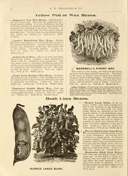 | Keywords: Bolgiano's 1902 catalogue (16348215661).jpg F W BOLGIANO CO <br> Yellow Pod or Wax Beans <br> Bolgiano's Now Wax Beans Introduced by <br> use four years ago The pods a e round and of a <br> bright golden yellow It is very productive bearing <br> its fruit in clusters of medium size thich flesh pods <br> about the size and shape of the green Valentines It <br> is very early and our trade has been much pleased <br> with this beau It is free from rust and almost string- <br> less Quart 20C Gallon 75c Peck 1 25 Bush- <br> el 5-°°- <br> Cm-lie's Rust-Proof Wax Bean Market <br> gardeners and truckers are loud with their praise of <br> this most wonderful bean It is the earliest bush bean <br> grown ; very productive ; pods long flat tender and <br> of fine quality Excellent shipper V 2 pint 5c <br> Pint ioc Quart 20c Gallon 60c Peck 1 00 <br> GPbldeil-Eyed Wax This is an early and vigor- <br> ofcs-growing variety yielding a great profusion of <br> tender pods of a beautiful waxy appearance The <br> vine grows about i l / 2 feet high holding the pods well <br> off the ground thus keeping them clean and attractive <br> It is singularly free from blight and rust The pods <br> are flat and large y z pint ioc Pint 15c Quart <br> 20c Peck 1 00 Bushel 3 75 <br> Extra Early Refugee Wax Bean Produces <br> an enormous crop of pods of a clear transparent color <br> It remains tender longer than any other wax sort and <br> is practically ever-bearing l / z pint ioc Pint 15c <br> Quart 25c Gallon 75c Peck 1 25 Bushel 4 00 <br> 1 1 111 proved Proline Blaek Wax Pods are <br> round creamy yellow tender and productive The <br> most popular wax bean / 2 pint 5c Pint ioc Quart <br> 15c Gallon 60c Peck 1 00 Bushel 4 00 <br> \/ WARDWELL'S KIDNEY WAX <br> This variety is very hardy and both pod and plants <br> are more robust than usual for a wax bean The shape <br> of the beans is distinct from all other wax varieties <br> being of a perfect kidney shape It produces a heavy <br> crop of purely wax pods which are very long flat <br> showy and not liable to rust or blister Very early <br> Pint ioc Quart 15c Peck 1 20 Bushel 4 00 <br> Culture of Beans Dwarf beans may nof be safely planted <br> until the middle of April owing to late frost but may be <br> planted thereafter as desired until the middle of August <br> Select high rich soil; make drills two feet apart; drop <br> beans along the rows and cover with earth Hoe often and <br> keep earth to the sterns <br> Bush Lima Beans <br> BURPEE LARGE BUSH <br> Burpee Large Busk Is an im- <br> mense yielder each bush bearing from <br> fifty to two hundred of the handsome <br> large pods well filled with very large <br> beans which are identical in size and <br> luscious flavor to the well-known large <br> Pole Limas By the introduction of this <br> most valuable novelty the largest and <br> best Lima Beans can now be raised in <br> quantity at small cost without the ex- <br> pense and labor attached to the use of <br> poles y 2 pint ioc Pint 15c Quart 25c <br> Gallon 1 00 Peck 1 50 Bushel 5 75 <br> /JDreer's Busk Large Lima Bean <br> This remarkable bush bean produces pods <br> in great abundance 185 having been <br> counted on a single plant It requires <br> no poles or stakes The beans grow close <br> together three four and sometimes five <br> in a pod and very thick sweet and suc- <br> culent It ripens fully ten days earlier <br> than any of the Pole Limas l / 2 pint ioc <br> Pint 15c Quart 25c Gallon 1 00 <br> Henderson Busk Lima Beans <br> This bean was introduced about fifteen <br> years ago It has merit in being pro- <br> ductive and very early for family use <br> and where the trade demands a small- <br> sized bean it has no superior It is of <br> fine flavor and very attractive when served <br> on the table Quart 25c Gallon 90c <br> Peck 1 50 42156252 132756 65911 Page 2 Text http //www biodiversitylibrary org/page/42156252 1902 10 5962/bhl title 65911 F W Bolgiano Co ; Henry G Gilbert Nursery and Seed Trade Catalog Collection NameFound Limas NameConfirmed Limas NameBankID 4220815 Biodiversity Heritage Library Bolgiano's 1902 catalogue tested seeds for the garden and farm Garden Stories Bulbs Plants Catalogs Fruit Garden tools Nurseries Horticulture Seeds Vegetables U S Department of Agriculture National Agricultural Library bhl page 42156252 dc identifier http //biodiversitylibrary org/page/42156252 bhlGardenStories BHLinbloom bulbs plants nurseries horticulture u s department of agriculture national agricultural library bhlgardenstories bhlinbloom Information field Flickr posted date ISOdate 2015-01-23 Check categories 2015 August 24 CC-BY-2 0 BioDivLibrary https //flickr com/photos/61021753 N02/16348215661 2015-08-24 08 50 28 cc-by-2 0 PD-old-70-1923 Bolgiano's 1902 catalogue Photos uploaded from Flickr by FÌ using a script |