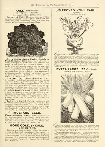 | Keywords: Bolgiano's 1902 catalogue (16348243571).jpg 935 B Street N W Washington D C <br> KALE-JBlatter 1fcobl <br> U to 2 pounds to the acre <br> One ounce will sow 200 feet drill <br> Culture of Kale Kales are more hardy than <br> cabbage and make excellent greens for winter and <br> spring use being improved by frost Sow from May <br> to June and cultivate the same as cabbage <br> j/Extra Dwarf Green Curled Scotch or <br> Norfolk Kale This is one of the best kales for <br> spring sowing in the North and is the principal sort <br> grown in the South for Northern markets It is <br> hardy and will remain over winter in any place <br> where the temperature does not go below zero The <br> habit is very dwarf and spreading and will rarely <br> exceed eighteen inches in height The leaves are of <br> a bright green color beautifully curled and produced <br> in great abundance Packet 5c Ounce 10c Âą <br> Fj und 15c Pound 40c <br> /Kew Very Curly Long Standing Kale <br> A beautiful curled and crimped sort of strong <br> vigorous habit perfectly hardy bright green <br> color and very attractive in appearance It is supe- <br> rior to all other sorts and will stand longer without <br> shooting to seed than any other variety Packet 5c <br> Ounce 10c ÂŁ Pound lnc i Pound 25c Pound 40c <br> v Curled German Kale Hardy Stands the <br> frost of our severest winters grows rapidly dwarf <br> habit and is beautifully curled Thousands of acres <br> are sown in this section to supply the markets <br> Packets 5c and 10c ÂŁ Pound 15c Âą Pound 20c <br> Pound 30c <br> yrall Green Curled Seotch A favorite with <br> 'Northern market gardeners growing about two feet <br> in height and hardier than the Extra Dwarf Green <br> Curled Scotch beiDg improved by frost Leaves green <br> and beautifully curled and wrinkled Packet 5c <br> Ounce 10c i Pound 15c Pound 40c <br> MUSTARD SEED <br> Southern Giant Curled An improved vari- <br> ety much esteemed in the South Very succulent <br> pungent and of sweet flavor Frequently sown in <br> the fall in the South Packet 5c Ounce 10c <br> i Pound 15c -J- Pound 25c Pound 40c <br> BORE COLE or KALE <br> Spargel ifcobl <br> This is a most beautiful kale About Baltimore it <br> is sown in May and transplanted like cabbage to <br> stand over winter Around Norfolk it is grown <br> largely broadcast like the German kale for early <br> shipment It is most desirable and will continue to <br> grow in favor Packet 5c Ounce 10c J Pound <br> 20c Pound 60c <br> /TMPROVED KOHLRABI <br> fcebUlftabi <br> H pounds to the acre <br> Improved Kohl-Kabi Has always beeu a favorite with <br> the European gardener and is gradually gaining great pop- <br> ularity in this country When young and tender and prop- <br> erly prepared for the table it is almost equal to cauliflower <br> Besides it is a certain crop requiring no more care or culti- <br> vation than a crop of cabbage For an earlj- crop sow in a <br> hot-bed early in spring and treat the same as directions <br> given for early cabbage For a fall crop sow in June <br> Packets 5c and 10c Ounce 15c h Pound 40c Pound 85c <br> Pound 1 26 <br> EXTRA LARGE LEEK -xaucb <br> 1 ounce to sow a drill of 100 feet <br> Kxtra Large Leek - It is the best This nwramotli leek <br> is not to be compared with the old kinds It grows so much <br> larger and very handsome Take the extra large as tb <br> sorts are not worth garden room Packets 5c and 10c Ounce <br> 15c + Pound 4Uc Pound 1 25 <br> Culture of Leek The leek is very hardy of easv culture <br> and succeeds best in a light rich soil Sow early in April in <br> drills 1 foot apart and 1 inch deep When the plants are 6 to <br> 8 inches high transplant in a deep rich soil in rows TJ luetics <br> apart and ÂŤ inches in the rows as deep as possible so that the <br> neck may be covered and blanched draw the earth to them <br> as they grow The seed may also be sown in August or Sep <br> tember and the young plants transplanted in the spring 42156267 132756 65911 Page 17 Text http //www biodiversitylibrary org/page/42156267 1902 10 5962/bhl title 65911 F W Bolgiano Co ; Henry G Gilbert Nursery and Seed Trade Catalog Collection Biodiversity Heritage Library Bolgiano's 1902 catalogue tested seeds for the garden and farm Garden Stories Bulbs Plants Catalogs Fruit Garden tools Nurseries Horticulture Seeds Vegetables U S Department of Agriculture National Agricultural Library bhl page 42156267 dc identifier http //biodiversitylibrary org/page/42156267 bhlGardenStories BHLinbloom bulbs plants nurseries horticulture u s department of agriculture national agricultural library bhlgardenstories bhlinbloom Information field Flickr posted date ISOdate 2015-01-23 Check categories 2015 August 24 CC-BY-2 0 BioDivLibrary https //flickr com/photos/61021753 N02/16348243571 2015-08-24 08 53 03 cc-by-2 0 PD-old-70-1923 Bolgiano's 1902 catalogue Photos uploaded from Flickr by FĂŚ using a script |
