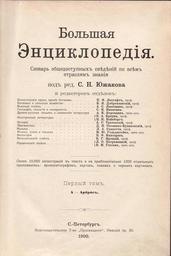 Keywords: Bolshaja enciklopedija.jpg BadJPEG Большая энциклопедия Слова ь общедоступных сведений по всем от аслям знаний под ед С Южакова Пе вый том А - А б осъ С -Пете бу г Книгоиздательское Т-во П освещение 1900 Титульная ст аница<br>Title pages of Great Encyclopedia 1900 scan by Alma Pater 16 26 17 March 2008 UTC 1900 scan 2008 Alma Pater 16 26 17 March 2008 UTC PD-Yuzhakov Transcript Большая Энциклопедія Слова ь общедоступныхъ свѣдѣнiй по всѣм от аслямъ знанiя под ед С Южакова и едакто овъ отдѣловъ Encyclopedias of Russia Encyclopedias in Russian Title pages from Russia