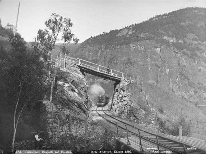 | Keywords: Bolstadøyri stasjon.jpeg en Bolstadøyri railway station on Vossebanen now Bergensbanen in Voss Norway http //www nb no/cgi-bin/galnor/gn_sok sh id 46843 skjema 2 fm 4 Creator Axel Lindahl 1883 - 1890 PD-old-100 Axel Lindahl Bolstadøyri stasjon Bridges over railway lines in Norway Footbridges in Hordaland Historical images of Voss Overpass bridges in Norway Photographs by Axel Lindahl | ||||