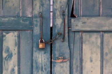 Keywords: bolt closure chain door wood grey turquoise blue metal iron old rusted stainless goal access antique input barn building architecture