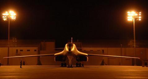 Keywords: bomber aircraft military b1b lancer swept wing variable ground runway night takeoff jet airplane plane supersonic weapon usa aviation