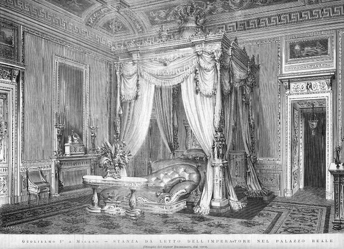 | Keywords: Bonamore, Antonio (1845-1907) - Stanza da letto dell'Imperatore nel palazzo Reale a Milano (17 ott 1875) - Da Illustraz Italiana.jpg Antonio Bonamore 1845-1907 Gugliemo I a Milano - Stanza da letto dell'Imperatore nel palazzo Reale a Milano 17 ott 1875 Incisione tratta da L'Illustrazione Italiana 1875 Antonio Bonamore 1845-1907 - Wilhelm I in Milan - The kaiser's bedroom in the Royal Palace in Milan October 17 1875 Engraving from L'Illustrazione Italiana 1875 own scan 1875 Antonio Bonamore 1845-1907 PD-Art Antonio Bonamore Milan in art Palazzo reale 1875 History of Milan 1875 Wilhelm I of Germany 1875 Palazzo Reale Milan - Inside 1875 Events in Milan 1875 1875 events Milan Bedrooms in Italy Milano Palazzo Reale Four poster beds 1875 Bed curtains Fainting couches 1875 1870s interiors in art 1875 L'Illustrazione Italiana |