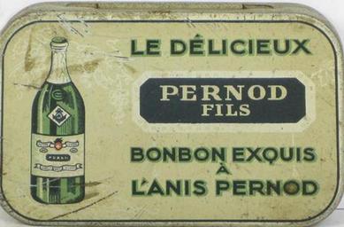| Keywords: Bonbons à l'anis Pernod fils.jpg fr Bonbons à l'anis Pernod fils 2012-05-30 http //www oldshopstuff com/Shop/tabid/1248/ItemID/10625/Listing/Old-Tin-for-Le-Delicieux-Pernod-Fils-Bonbon-Exquis-A-L-Anis-Pernod/Default aspx Unknown 1918 Custom license marker 2012 05 31 Anonymous-EU Uploaded with UploadWizard Pernod Sweets tins |