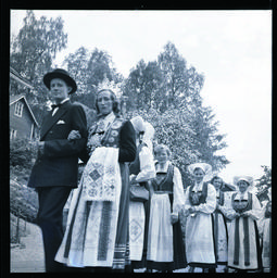 Keywords: bunad bryllup frukttrær blomstring ulvik hordaland norge people photo border outdoor Tradisjonelt bryllup i Ulvik i Hardanger i mai 1954. Tradisjonelt bryllup i Ulvik i Hardanger i mai 1954.