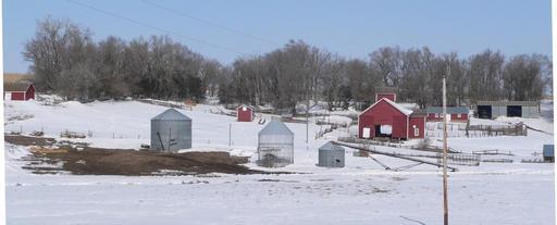 | Keywords: Bonderson Farm central farmyard.JPG Ben Bonderson Farm in Dakota County Nebraska about four miles east of Emerson Nebraska ; seen from the south The farm is listed in the National Register of Historic Places The red building at the left edge of the photo is the hog shed attached to the hay barn The small red structure just left of center is a granary The large red building with a cupola is a drive-in crib barn The red building immediately to its right behind the pole in foreground is the cow shed To its right the metal building with two large square doorways is the machine shed A storage shed is partly visible at the right edge of the photo The three cylindrical structures with conical tops in the left and center foreground are a silo in the middle and a grain bin on either side Additional buildings including the house are out of the frame at right east Own Ammodramus 2010-03-04 Pictures by Ammodramus Taken with Panasonic Lumix DMC-FZ20 Ben Bonderson Farm Cowhouses |