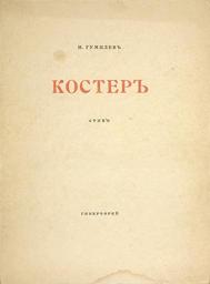 | Keywords: Bonfire by Gumilev - Front Cover.jpg Cover of Bonfire by Nikolay Gumilev 1918 Обложка сбо ника стихов иколая Гумилёва «Костё » 1918 http //www vnikitskom ru/antique/images/lots-new/56/52-132-1922-252-03282989 jpg 1918 author PD-old Books from Russia 1918 Book covers from Russia Books by Nikolai Gumilev |