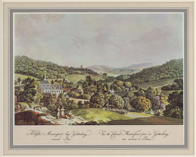| Keywords: Bonn Kloster Marienforst bei Bad Godesberg Johann Andreas Ziegler.jpg Bonn Kloster Marienforst bei Bad GodesbergBad Godesberg; Kupferstich aquarelliert aus »Fünfzig malerische Ansichten Rhein-Stroms von Speyer bis Düsseldorf« erschienen bei Artaria in Wien 1798; nach Aquarellen von Laurenz Janscha die im Sommer 1792 entstanden http //images zeno org/Kunstwerke/I/big/561s037a jpg 1792 Creator Johann Andreas Ziegler PD-old-100 Fünfzig malerische Ansichten Rhein-Stroms von Speyer bis Düsseldorf Bad Godesberg Bonn in the 18th century 1792 Images from zeno org |