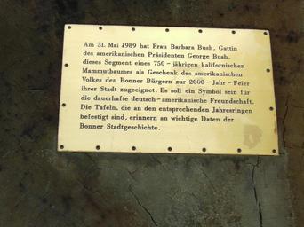 | Keywords: Bonn Mammutbaum.jpg Segment of a Sequoioideae german Mammutbaum in the Rheinaue Leisure Park in Bonn Segment eines Mammutbaums im Bonner Freizeitpark Rheinaue own 2006-09-04 Leit Mammutbaum Bonn 2006 in Bonn 20060904 Information boards in Bonn |