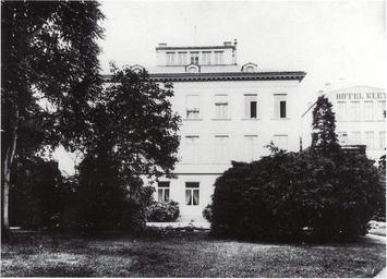 | Keywords: Bonn Villa Wutzer Gartenfront.jpg Villa Wutzer zum Zeitpunkt der Aufnahme Teil des Hotel Kley; erbaut 1834/35 1905 abgebrochen Coblenzerstraße 3 Bonn Gartenfront mit dem nördlichen Nebengebäude Archiv Dr Hanns Eller<br />Olga Sonntag Villen am Bonner Rheinufer 1819 “1914 Bonn 1998 ISBN 3-922832-21-0 Band 2 Katalog 1 S 36 before 1898 Photograph Schauer PD-old Coblenzerstraße 3 Bonn; 1835 “1905 Bonn in the 1890s | ||||