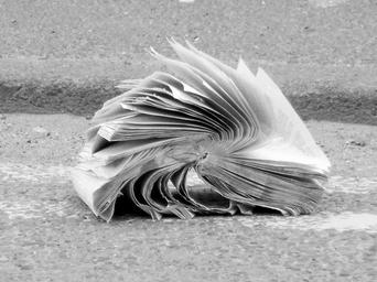 Keywords: book abandoned crumpled