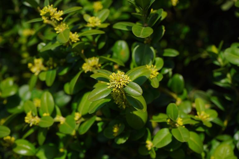 Keywords: book blossoms book tree blossoms book ordinary boxwood branches green leaves buxus sempervirens boxwood buxus garden plant ornamental plant ornamental shrub