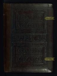 | Keywords: devotional flemish christian book codex manuscript illumination miniature flanders devotion 15th century 15thcentury historiated initial historiatedinitial walters art museum waltersartmuseum notable binding notablebinding book of hours bookofhours This Book of Hours was originally completed ca. 1430-1440 but has since been reconstructed, with several prayers and suffrages having been added to it over time. The miniatures were illuminated under the influence of the Master of Guillebert de Mets. Both the original and a subsequent owner are depicted in prayer on fols. 9v and 165v, respectively. The book was rebound by Joris de Gavere of Ghent ca. 1525-1535. The manuscript was rebacked in the modern period, but the sixteenth-century boards remain. Both contain stamped panels depicting angels playing instruments, and a band of fantastic animals depicted in profile. An inscription cites Joris de Gavere as the maker and asks the angels for their prayers. Made in Flanders by Joris de Gavere; brown calf with replaced spine and corners to match; stamped panel on both upper and lower boards; top and bottom sections display angels playing instruments in roundels created by vines, with these two sections surrounded by text and floral borders inscribed with "Joris de Gavere me ligavit in Gandavo, om[n]es sancti angeli et archangeli dei orate pro nobis"; middle section contains five animals, from left to right: boar, unicorn, lion, wyvern, and a stag; two brass clasps probably added by Gruel. All manuscript images and descriptions were created and are provided through Preservation and Access grants awarded to the Walters Art Museum by the National Endowment for the Humanities, 2008-2015. Access a complete set of high-resolution archival images of this manuscript for free on The Digital Walters (www.thedigitalwalters.org/01_ACCESS_WALTERS_MANUSCRIPTS.html). For a digital “turning the pages” presentation of the manuscripts and downloadable PDFs, visit the Walters Art Museum’s Website (art.thewalters.org/browse/category/manuscript-and-rare-bo...). This Book of Hours was originally completed ca. 1430-1440 but has since been reconstructed, with several prayers and suffrages having been added to it over time. The miniatures were illuminated under the influence of the Master of Guillebert de Mets. Both the original and a subsequent owner are depicted in prayer on fols. 9v and 165v, respectively. The book was rebound by Joris de Gavere of Ghent ca. 1525-1535. The manuscript was rebacked in the modern period, but the sixteenth-century boards remain. Both contain stamped panels depicting angels playing instruments, and a band of fantastic animals depicted in profile. An inscription cites Joris de Gavere as the maker and asks the angels for their prayers. Made in Flanders by Joris de Gavere; brown calf with replaced spine and corners to match; stamped panel on both upper and lower boards; top and bottom sections display angels playing instruments in roundels created by vines, with these two sections surrounded by text and floral borders inscribed with "Joris de Gavere me ligavit in Gandavo, om[n]es sancti angeli et archangeli dei orate pro nobis"; middle section contains five animals, from left to right: boar, unicorn, lion, wyvern, and a stag; two brass clasps probably added by Gruel. All manuscript images and descriptions were created and are provided through Preservation and Access grants awarded to the Walters Art Museum by the National Endowment for the Humanities, 2008-2015. Access a complete set of high-resolution archival images of this manuscript for free on The Digital Walters (www.thedigitalwalters.org/01_ACCESS_WALTERS_MANUSCRIPTS.html). For a digital “turning the pages” presentation of the manuscripts and downloadable PDFs, visit the Walters Art Museum’s Website (art.thewalters.org/browse/category/manuscript-and-rare-bo...). |