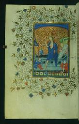 Keywords: devotional flemish christian book codex manuscript illumination miniature flanders devotion 15th century 15thcentury historiated initial historiatedinitial walters art museum waltersartmuseum notable binding notablebinding book of hours bookofhours photo border This Book of Hours was originally completed ca. 1430-1440 but has since been reconstructed, with several prayers and suffrages having been added to it over time. The miniatures were illuminated under the influence of the Master of Guillebert de Mets. Both the original and a subsequent owner are depicted in prayer on fols. 9v and 165v, respectively. The book was rebound by Joris de Gavere of Ghent ca. 1525-1535. The manuscript was rebacked in the modern period, but the sixteenth-century boards remain. Both contain stamped panels depicting angels playing instruments, and a band of fantastic animals depicted in profile. An inscription cites Joris de Gavere as the maker and asks the angels for their prayers. All manuscript images and descriptions were created and are provided through Preservation and Access grants awarded to the Walters Art Museum by the National Endowment for the Humanities, 2008-2015. Access a complete set of high-resolution archival images of this manuscript for free on The Digital Walters (www.thedigitalwalters.org/01_ACCESS_WALTERS_MANUSCRIPTS.html). For a digital “turning the pages” presentation of the manuscripts and downloadable PDFs, visit the Walters Art Museum’s Website (art.thewalters.org/browse/category/manuscript-and-rare-bo...). This Book of Hours was originally completed ca. 1430-1440 but has since been reconstructed, with several prayers and suffrages having been added to it over time. The miniatures were illuminated under the influence of the Master of Guillebert de Mets. Both the original and a subsequent owner are depicted in prayer on fols. 9v and 165v, respectively. The book was rebound by Joris de Gavere of Ghent ca. 1525-1535. The manuscript was rebacked in the modern period, but the sixteenth-century boards remain. Both contain stamped panels depicting angels playing instruments, and a band of fantastic animals depicted in profile. An inscription cites Joris de Gavere as the maker and asks the angels for their prayers. All manuscript images and descriptions were created and are provided through Preservation and Access grants awarded to the Walters Art Museum by the National Endowment for the Humanities, 2008-2015. Access a complete set of high-resolution archival images of this manuscript for free on The Digital Walters (www.thedigitalwalters.org/01_ACCESS_WALTERS_MANUSCRIPTS.html). For a digital “turning the pages” presentation of the manuscripts and downloadable PDFs, visit the Walters Art Museum’s Website (art.thewalters.org/browse/category/manuscript-and-rare-bo...).
