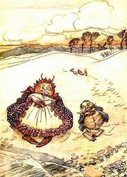 Keywords: book illustration literature arthur rackham vintage antique old aesops fables fairytales art people kids nature outdoors landscape scene scenery couple beach