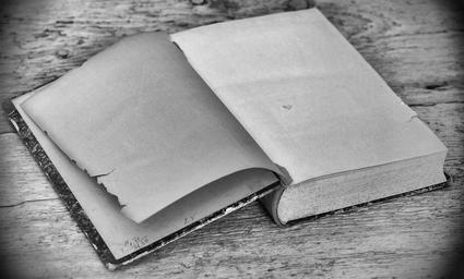 Keywords: book old empty pages book pages wood wooden table antique black and white recording