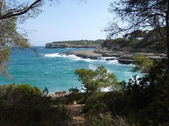 Keywords: booked mallorca spain blue water landscape sea scrub tree rock