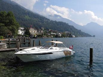 Keywords: boot lake luxury lake lucerne region water ship port landscape bank beach powerboat waters mountains yacht billionaire millionaire wealth spend assets switzerland lucerne weggis empire days wealthy