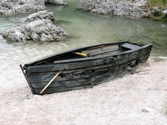 Keywords: boot wooden boat rowing boat beach water burned lake