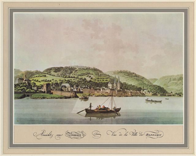 | Keywords: Boppard Ansicht vom noerdlichen Rheinufer aus Johann Andreas Ziegler.jpg Boppard Ansicht vom nördlichen Rheinufer aus; Kupferstich aquarelliert aus »Fünfzig malerische Ansichten Rhein-Stroms von Speyer bis Düsseldorf« erschienen bei Artaria in Wien 1798; nach Aquarellen von Laurenz Janscha die im Sommer 1792 entstanden http //images zeno org/Kunstwerke/I/big/561s017a jpg 1792 Creator Johann Andreas Ziegler PD-old-100 Fünfzig malerische Ansichten Rhein-Stroms von Speyer bis Düsseldorf Historic views of Boppard Images from zeno org |
