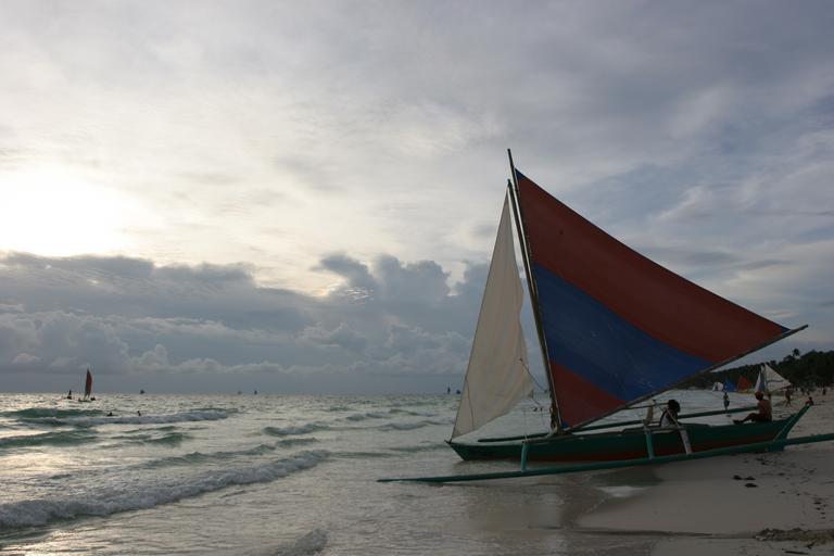 Keywords: boracay beach beach sea sunset whet is the only boat republic of the philippines island waves