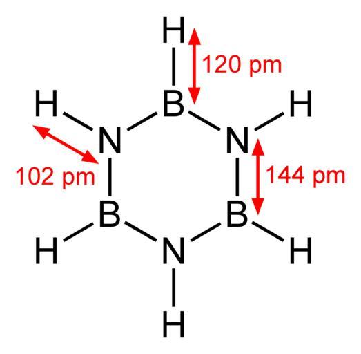 Keywords: Borazine-dimensions-2D.png Structure and dimensions of borazine Own 2007-09-05 Ben Mills Benjah-bmm27 chemical Images by Ben Mills Borazine