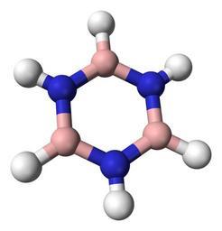 Keywords: Borazine-localised-3D-balls.png Ball-and-stick model of the borazine molecule without delocalisation of the nitrogen lone pairs around the ring Own 2007-09-06 Ben Mills Benjah-bmm27 Images by Ben Mills Ball-and-stick models Borazine