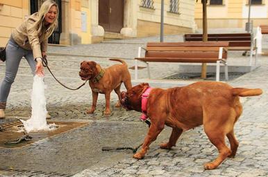 Keywords: bordeaux de dogue street mastiffs french two pet dog nature big collar puppy pavement outdoor europe outside city guard huge paving the alley brno czech republic animal my friend the guardian of the english