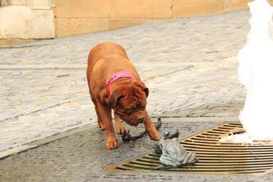 Keywords: bordeaux de dogue street mastiffs french two pet dog nature big collar puppy pavement outdoor europe outside city guard huge paving the alley brno czech republic animal my friend guardian czech fountain water
