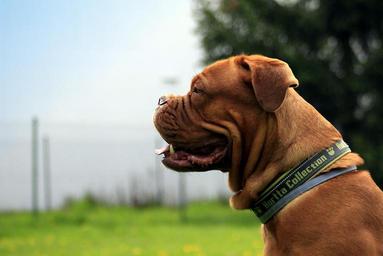 Keywords: bordeaux dog dogue mastiff de french sunny brown summer animal pet canine nature grass outdoors purebred young funny puppy mammal breed head cute park