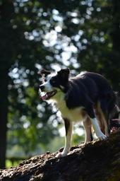 Keywords: border collie british sheepdog three coloured summer tree green sun