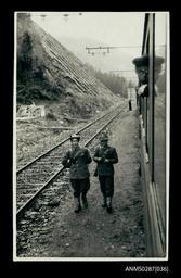 | Keywords: alex nypl alexnypl czechoslovakian migrant czechoslovakianmigrant czechoslovakia italy germany border border guards borderguards train migrant migrants immigration post-war migration postwarmigration australia photo border outdoor Black and white photographic print showing the German/ Italian border. Two Italian border guards, in full uniform, including hats and guns, are walking alongside the train. A passenger with his head stuck out of the window is to the front of the photographer. An inscription on the reverse reads: `Border guards in Italy / November 1948 / Alex Nypl / (Newman)'. Alex Nypl was a Czechoslovakian migrant who arrived in Melbourne on PROTEA, 23 December 1948. The ANMM undertakes research and accepts public comments that enhance the information we hold about images in our collection. Object no. ANMS0287[036] ANMM Collection Gift from Alex Newman The Australian National Maritime Museum will be holding an after-dark lightshow based on stories of migration from 26 January to 17 February 2013. Check the website for more information on 'Waves of Migration', and how you can tell share your migration story. Black and white photographic print showing the German/ Italian border. Two Italian border guards, in full uniform, including hats and guns, are walking alongside the train. A passenger with his head stuck out of the window is to the front of the photographer. An inscription on the reverse reads: `Border guards in Italy / November 1948 / Alex Nypl / (Newman)'. Alex Nypl was a Czechoslovakian migrant who arrived in Melbourne on PROTEA, 23 December 1948. The ANMM undertakes research and accepts public comments that enhance the information we hold about images in our collection. Object no. ANMS0287[036] ANMM Collection Gift from Alex Newman The Australian National Maritime Museum will be holding an after-dark lightshow based on stories of migration from 26 January to 17 February 2013. Check the website for more information on 'Waves of Migration', and how you can tell share your migration story. |